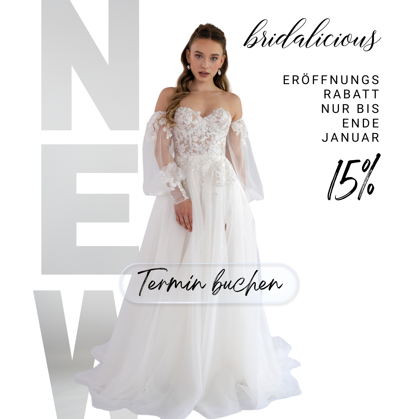 Sichere dir jetzt die begrenzten Neueröffnungstermine bei bridalicious bridal in Bremen und Wiesbaden!