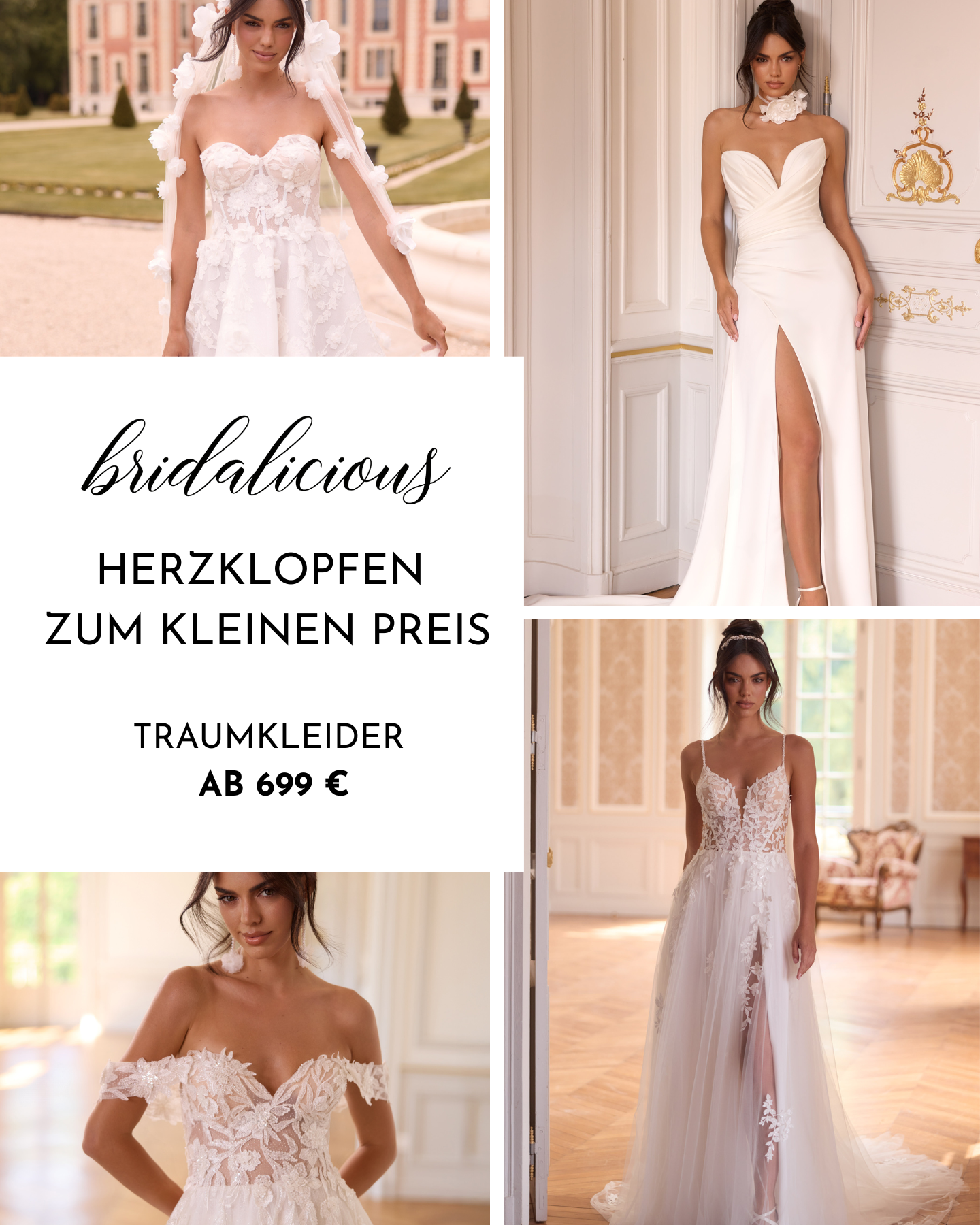 Boho, Vintage, Romantik, Prinzessin oder richtig extravagant – bei bridalicious findest du jeden Stil und die aktuellsten Hochzeitskleider-Trends. Dein Traumkleid wartet schon! 💕