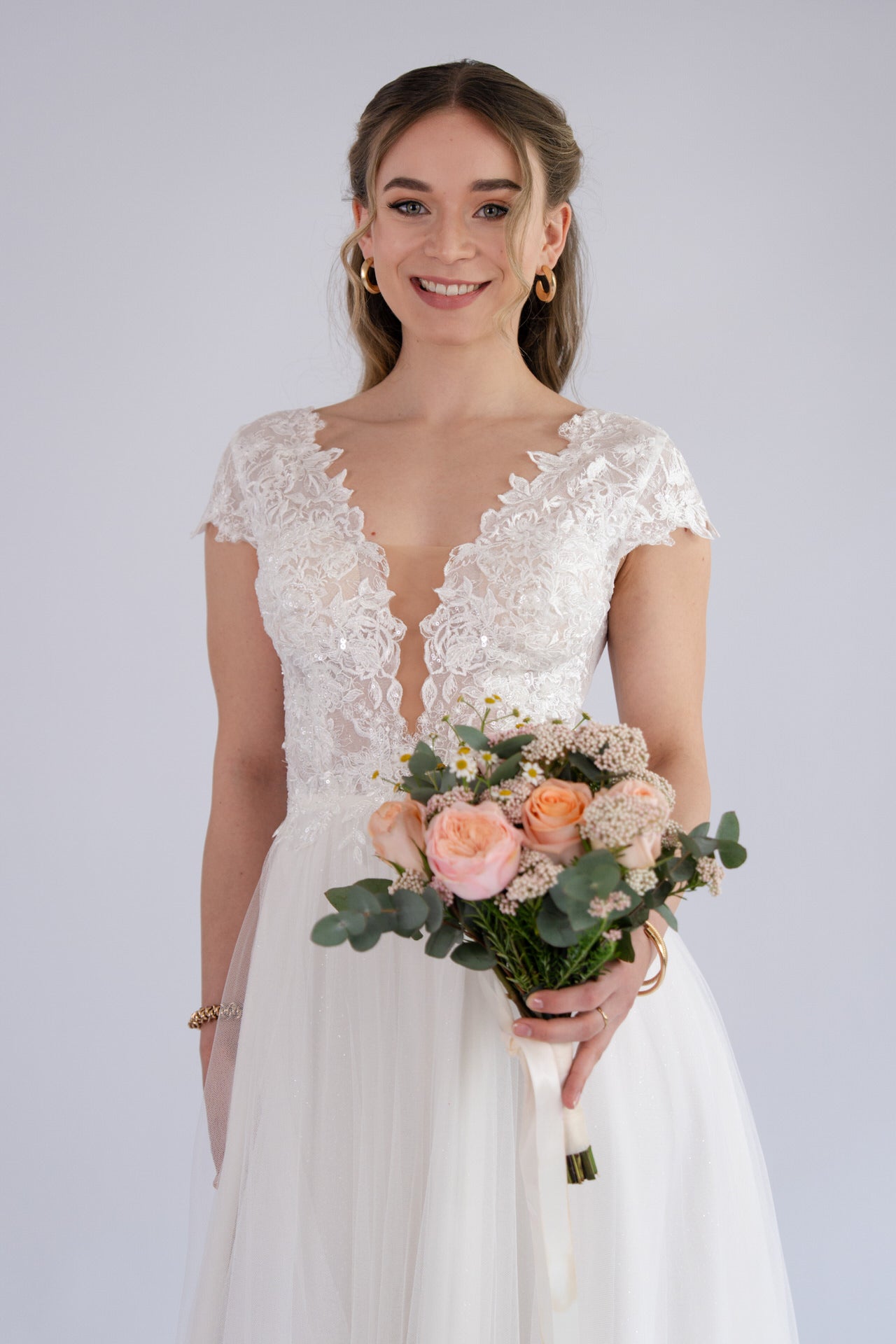 bridalicious bietet Hochzeitskleider, 2-Teiler sowie Accessoires an.
