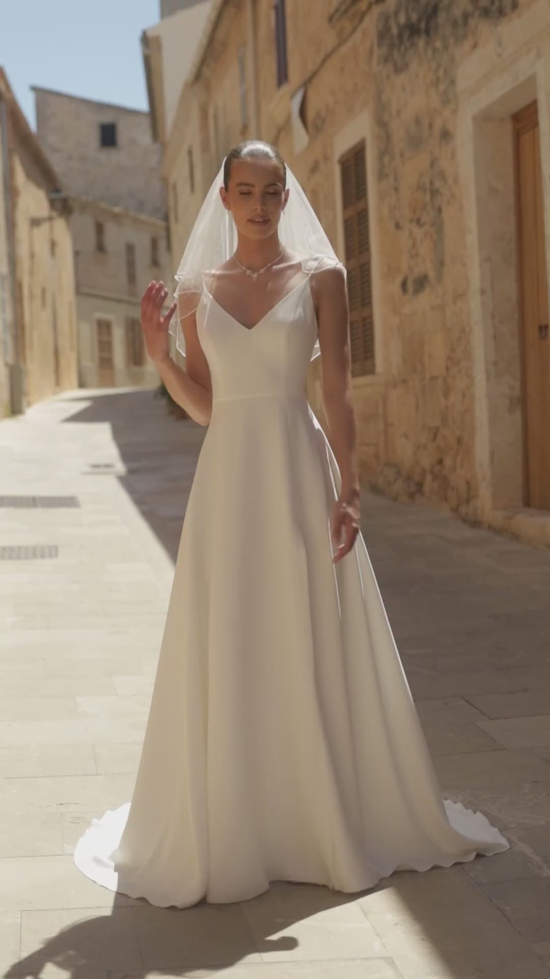 Das Bianco Evento Adelina Kleid ist die perfekte Wahl für jede weibliche Braut. Die A-Linie formt eine wunderschöne Silhouette, während die Spaghetti-Träger und der tiefe V-Ausschnitt am Rücken das Kleid sexy und elegant wirken lassen. Aus glänzendem Crepe-Stoff und Stretch für höchsten Komfort und Bewegungsfreiheit. Ideal für die Hochzeit.